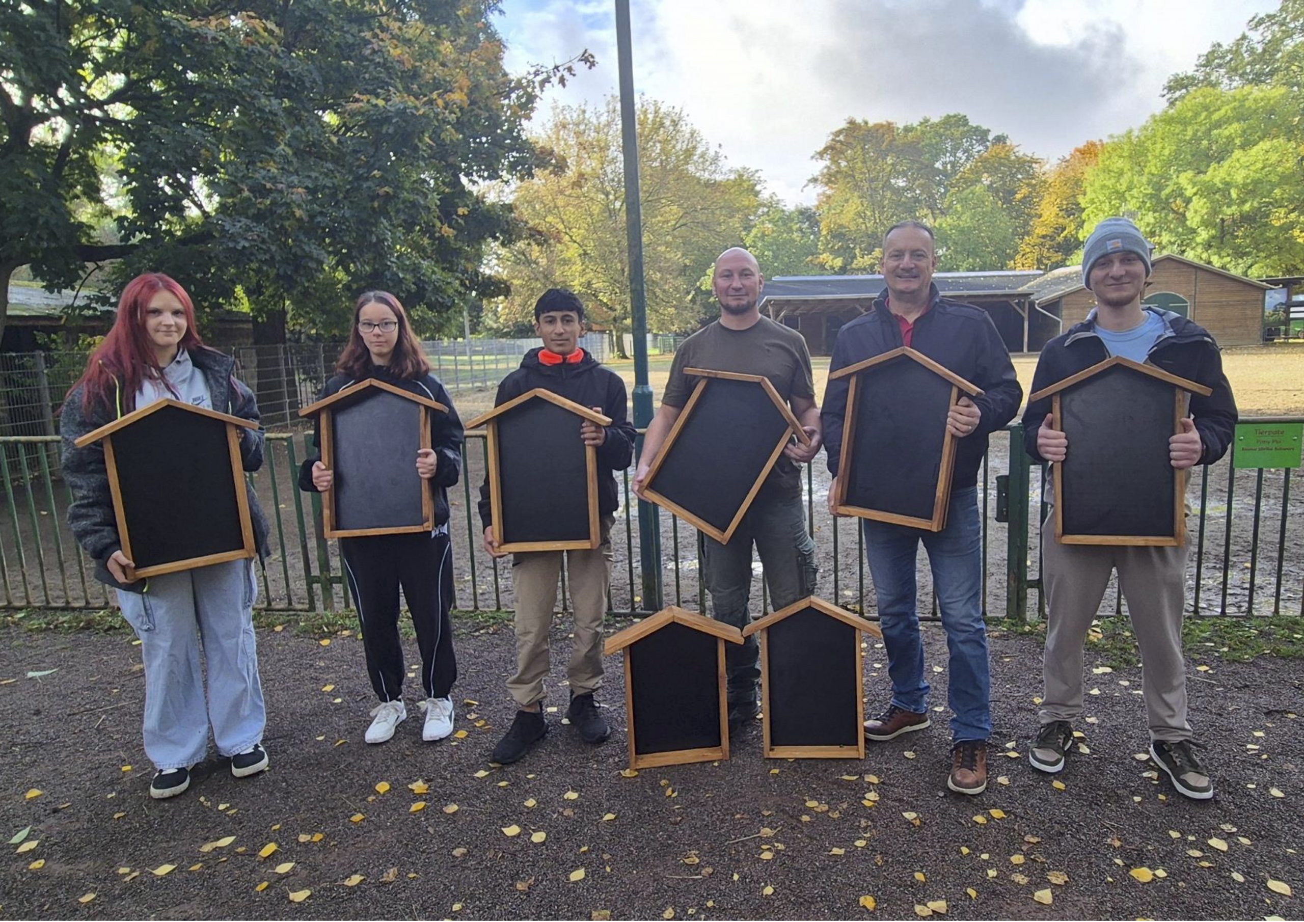 Ein gelungenes Beispiel für gelebtes Engagement und praktisches Lernen präsentierten am Donnerstag die Schülerinnen und Schüler des Berufsvorbereitungsjahres (BVJ) der Europaschule Oschersleben. Unter der Leitung ihres Lehrers Herrn Lindner haben sie in den vergangenen Wochen neue Schautafeln für das Tiergehege im Wiesenpark entworfen und angefertigt.