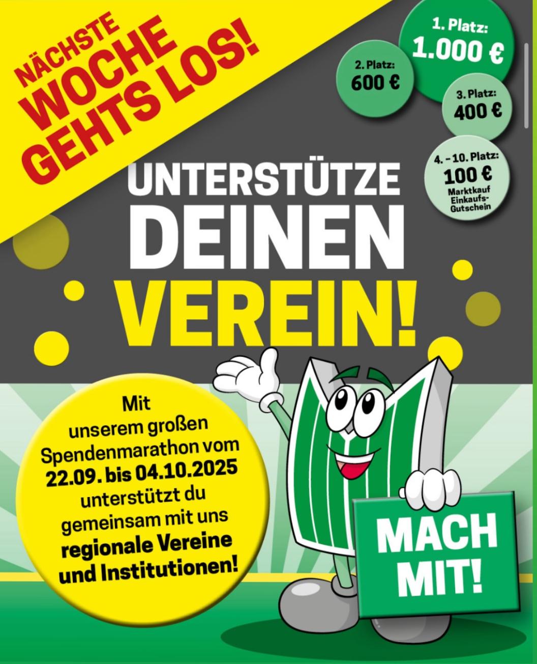 Read MoreGute Nachrichten: der Förderverein unserer Schule ist beim Spendenprojekt des Marktkaufs Oschersleben dabei! Vom 22.09. bis 04.10.2025 habt ihr, eure Familien und Freunde die Chance, uns direkt zu unterstützen – ganz einfach beim Einkaufen. So funktioniert’s: Das gibt’s zu gewinnen: 🥇 1. Platz: 1.000 € 🥈 2. Platz: 600 € 🥉 3. Platz: 400 € Platz 4–10: je 100…